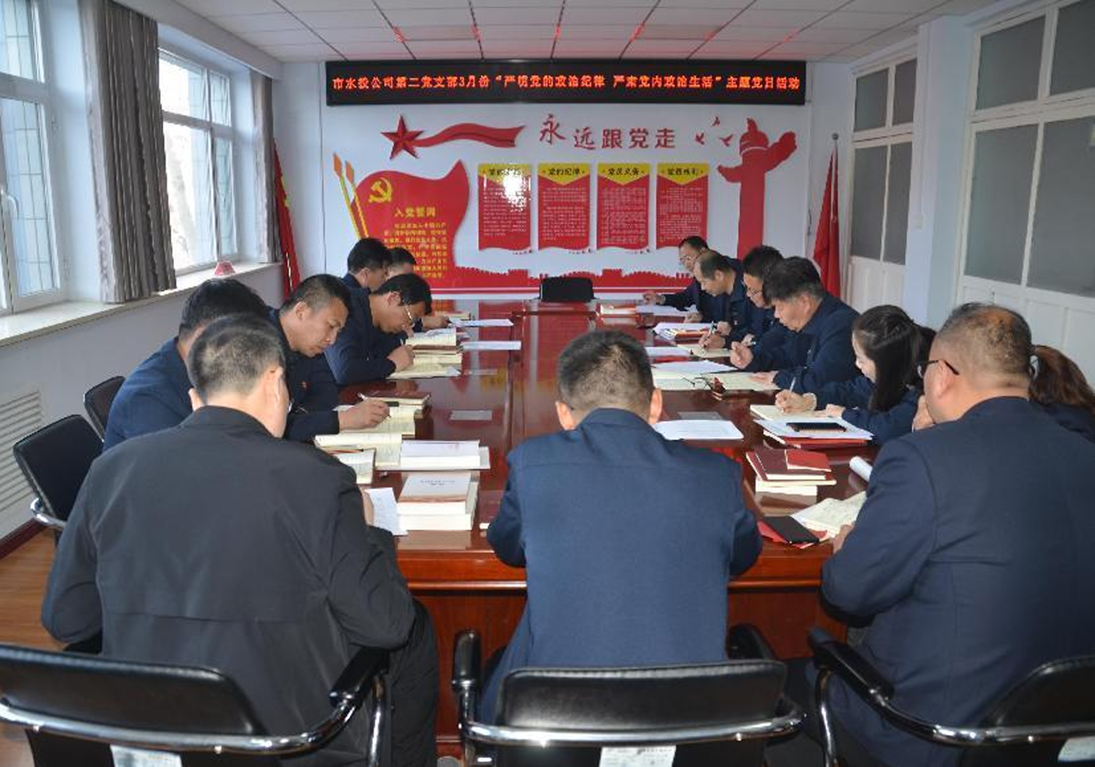 按照市水投公司黨委統(tǒng)一部署要求,第二黨支部2022年3月7日下午2:30分組織全體黨員、積極分子、群眾代表開展了“嚴(yán)明黨的政治紀(jì)律 嚴(yán)肅黨內(nèi)政治生活”主題黨日活動(dòng),會議由支部書記吳爭兵主持。