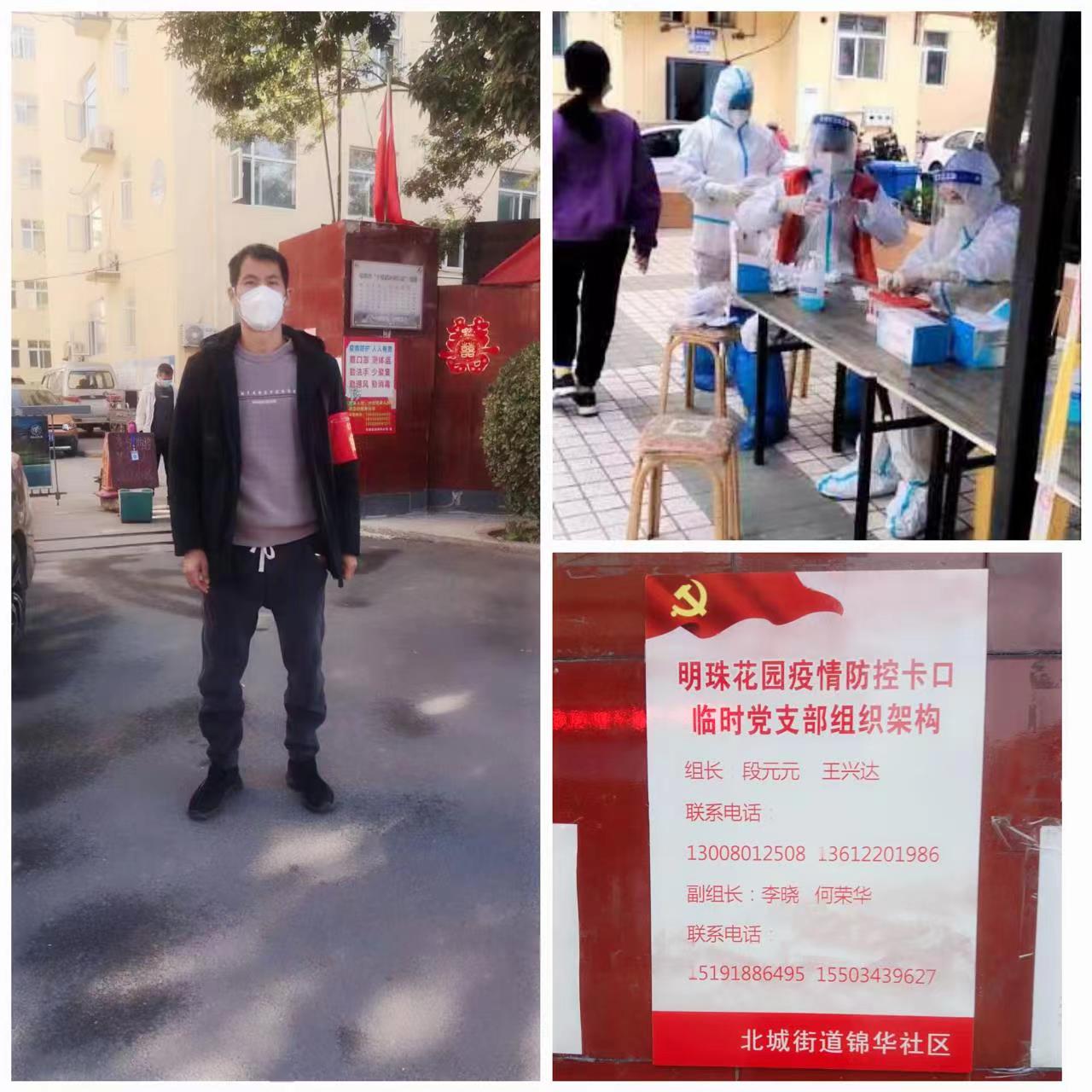 從10月4日到現(xiàn)在,整整10天時間,何榮華一直堅守在卡扣值守崗位上,嚴格落實防疫“四件套”,為小區(qū)防疫筑牢“銅墻鐵壁”。在做好自己工作的同時,積極幫助小區(qū)信息登記、維持秩序、測溫核碼、醫(yī)療保障、物資配送……“做什么都可以,只要是防疫需要。”樸實的語言,詮釋的是黨員們不變的初心。在他們的帶動下,越來越多的志愿者加入到他們的隊伍當(dāng)中,10天來,完成了10次上萬余人的核酸檢測,每天堅持在小區(qū)早晚巡查8小時以上,與明月晚星相伴,看朝霞旭日初升,他們頂住壓力,勇往直前,全力筑牢疫情防控防線,讓黨旗在疫情防控一線高高飄揚。