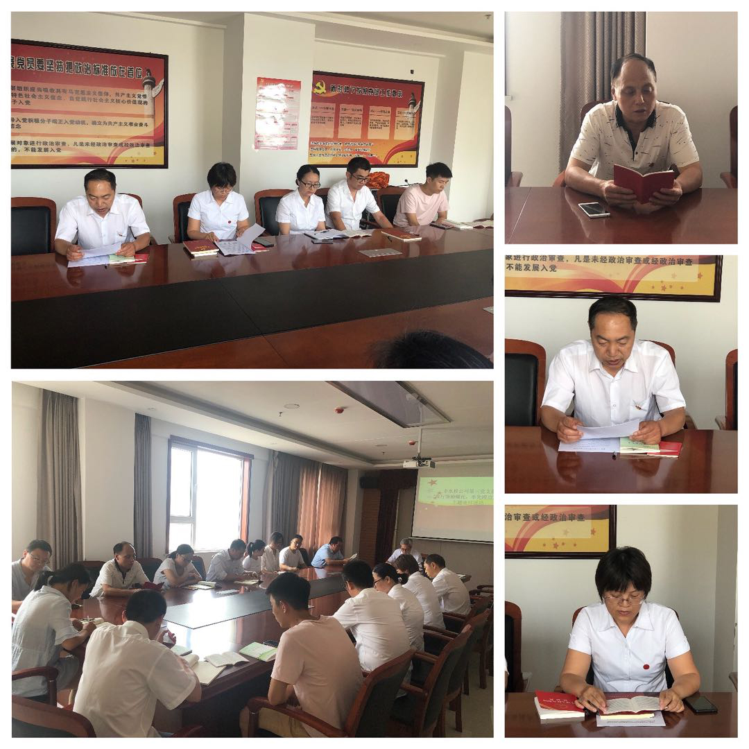 本月過(guò)“政治生日”的黨員郭紅爭(zhēng)、常雙歡同志領(lǐng)誦,全體黨員齊誦《黨章》第二章部分內(nèi)容。