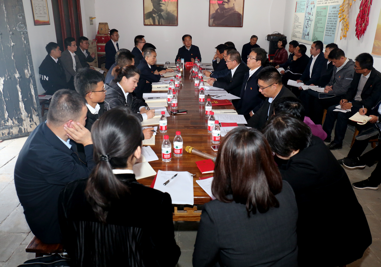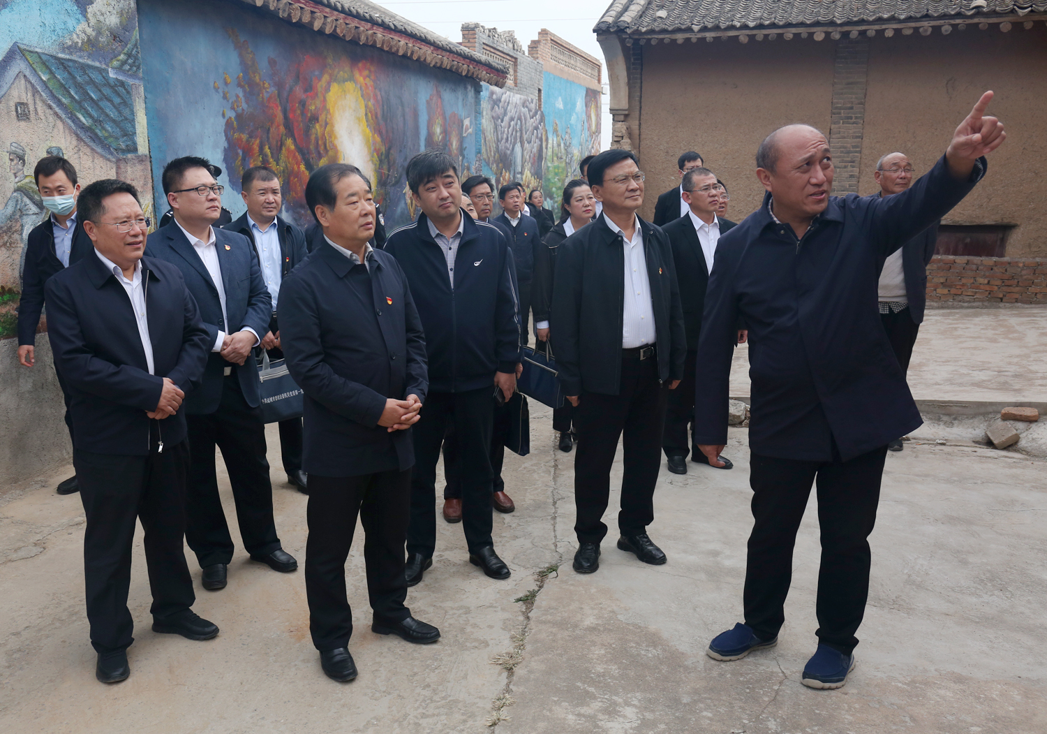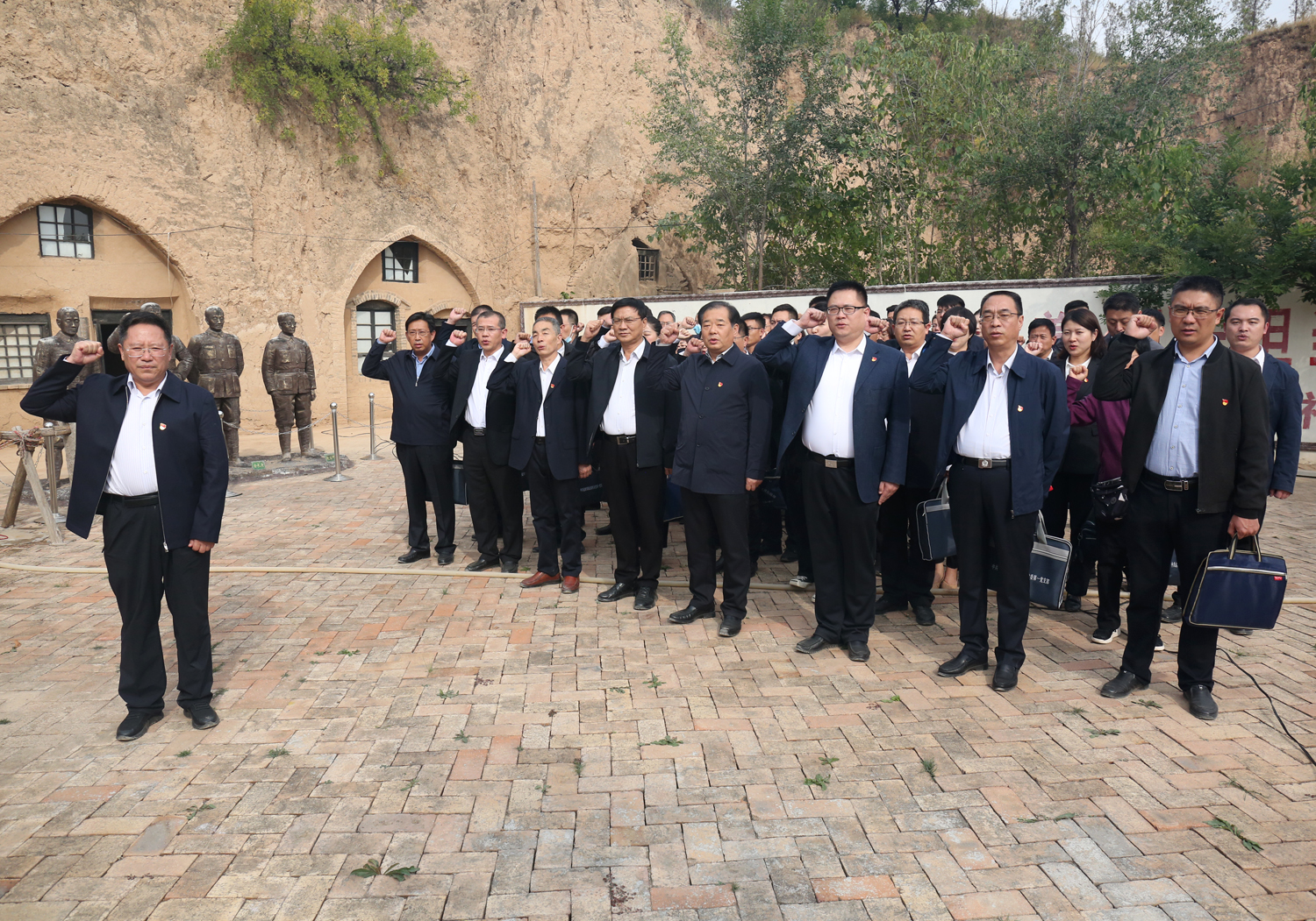 在稷麓縣抗日民主政府舊址,大家參觀了會議室、傳令班、先鋒亭等革命地點,聆聽了“大戰(zhàn)火焰山”“夜襲杜梨凹”“楊樊莊突圍”等稷麓烽火故事,深切感受到了稷麓縣政府的柴澤民、金長庚、趙宜軒、雷震龍等革命先輩攻堅克難、不怕犧牲的英雄氣概和無私奉獻(xiàn)、敢于勝利的革命風(fēng)范,對牛莊村為革命事業(yè)所做出的犧牲奉獻(xiàn)有了切身的感受和由衷的感動。市委政法委常務(wù)副書記、機關(guān)黨委書記周鑫同志帶領(lǐng)大家重溫了入黨誓詞。