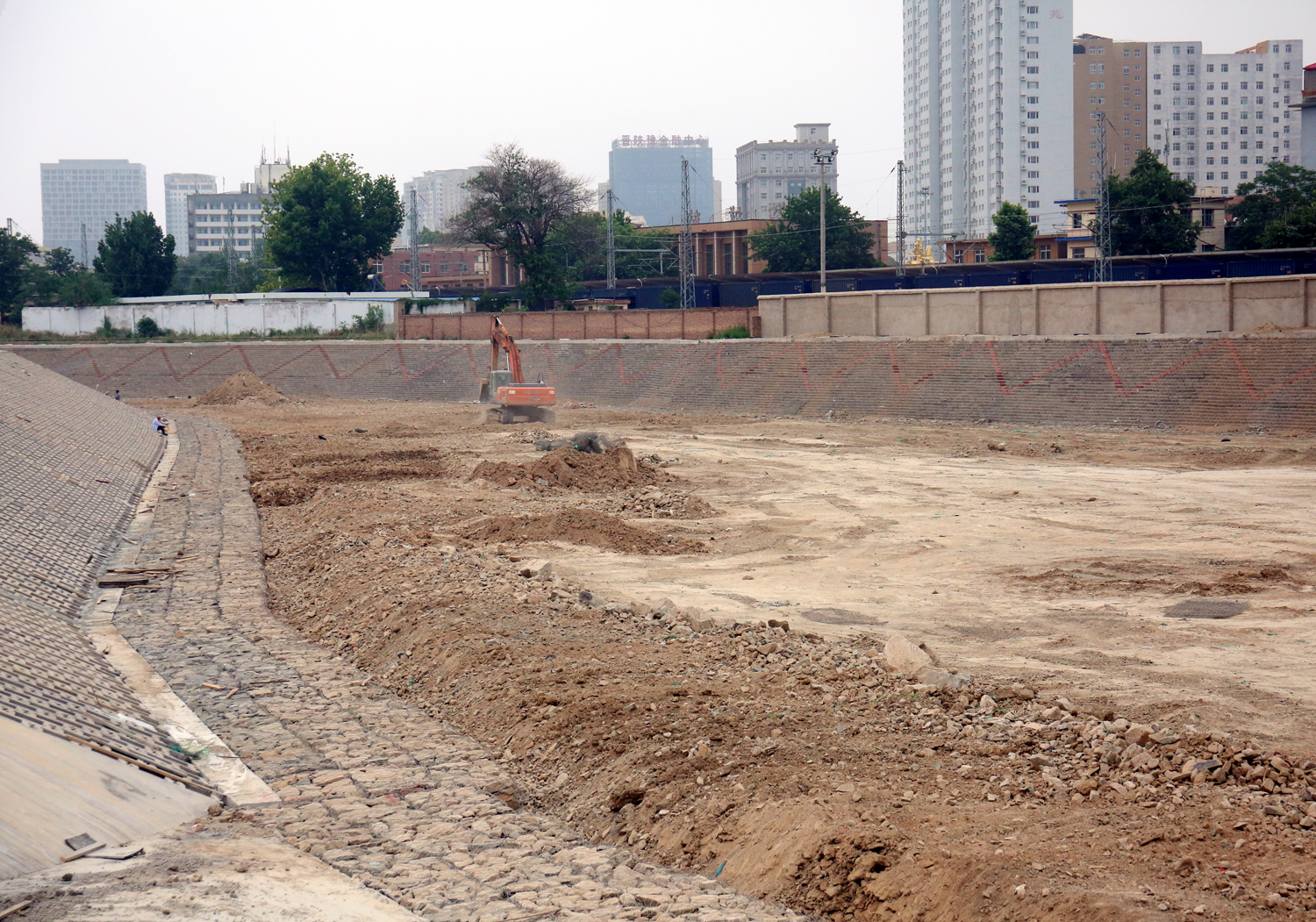 此次改造基于渠道原址,項目北起涑水街,南至火車站站北調節(jié)池西側提水泵站,全長4.26公里,批復主要建設內容為:1、明渠段治理2.06千米;2、暗涵段清淤1.84千米;3、站北調節(jié)池出口段治理0.362千米;4、東留調節(jié)池及站北調節(jié)池治理;5、綠化2.6萬平方米;6、埋設排污管道11.63千米;7、中水回用工程及生態(tài)補水工程等。
