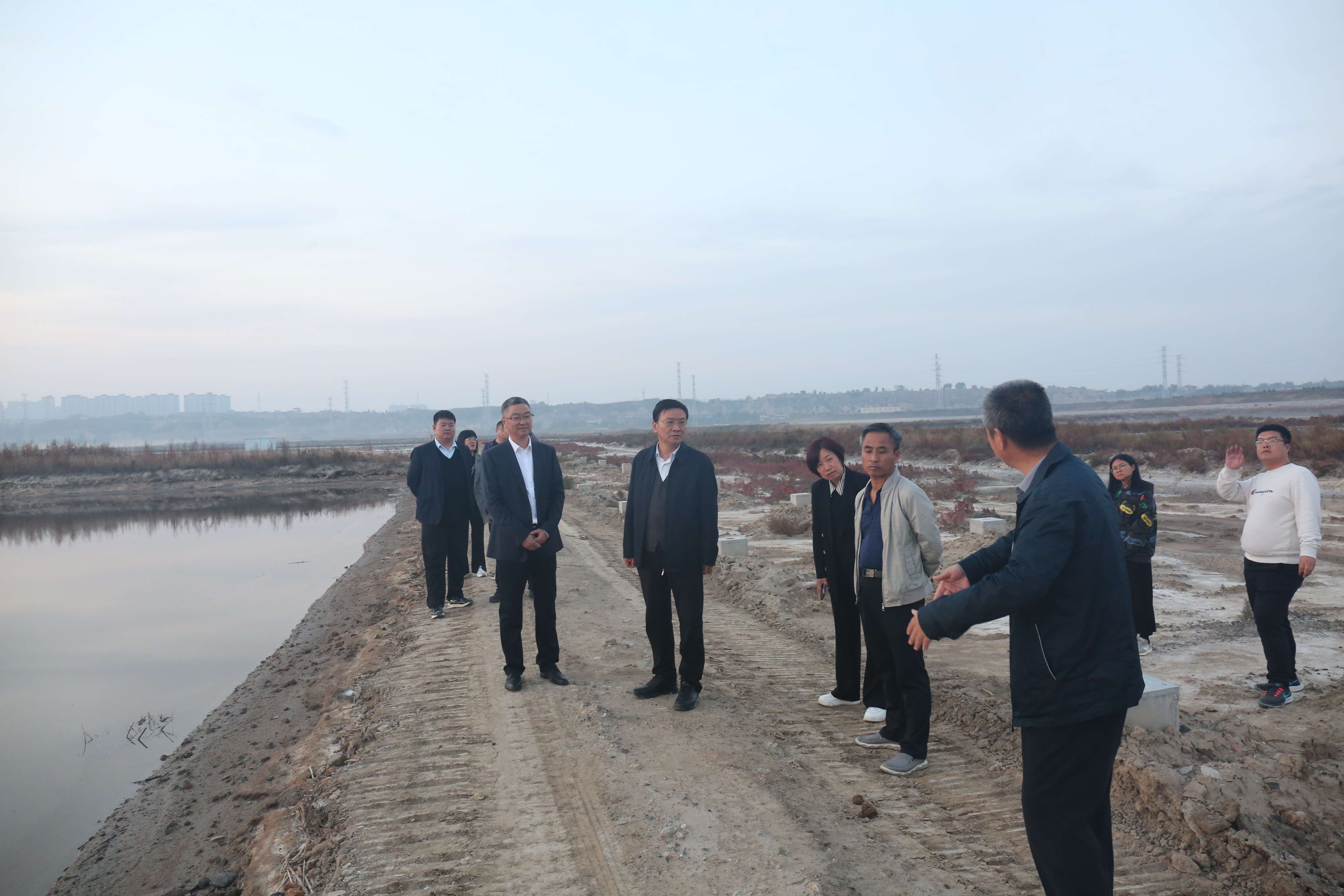 公司領導調(diào)研鹽湖堤埝治理項目(一期)木棧道施工現(xiàn)場