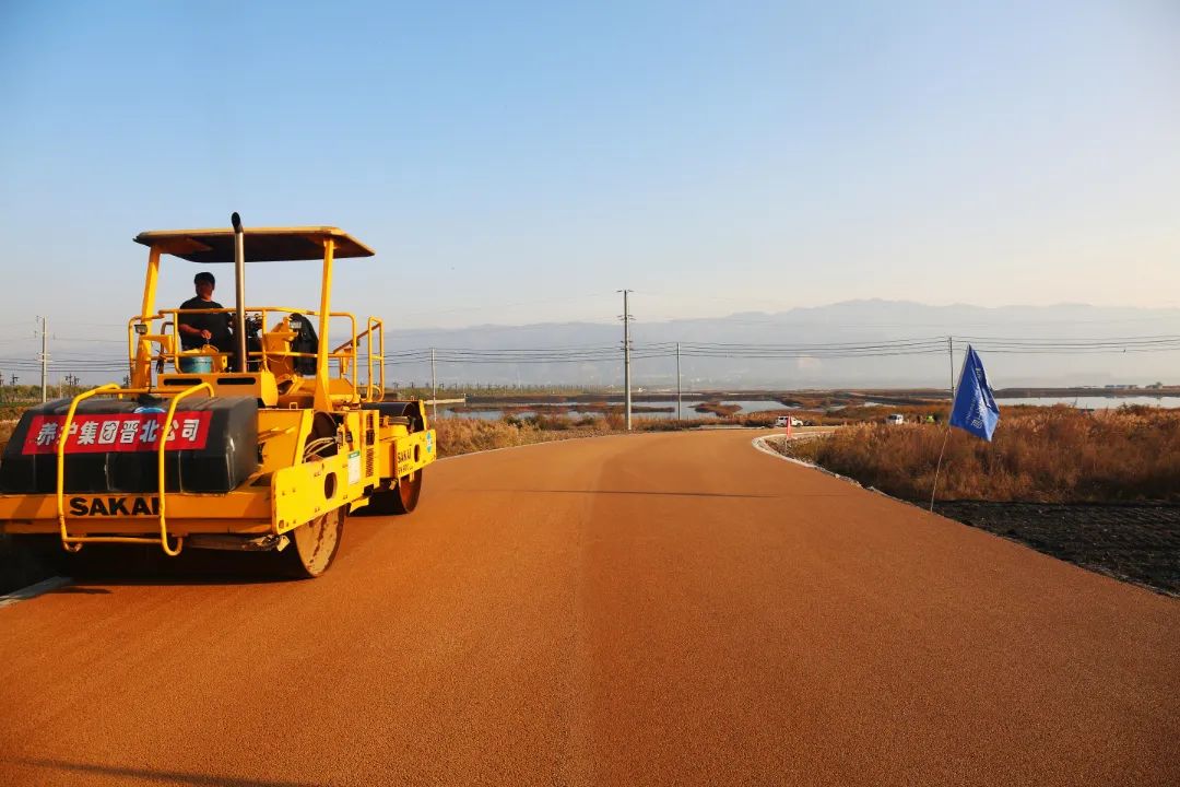 目前,已完成鹽湖堤埝二期21號連接段路面壓實;級配碎石路面結(jié)構(gòu)層鋪設(shè)及彩色瀝青的鋪設(shè);管涵建設(shè)一座;生態(tài)防護林場地平整2.3萬平方米,完成投資250萬余元。