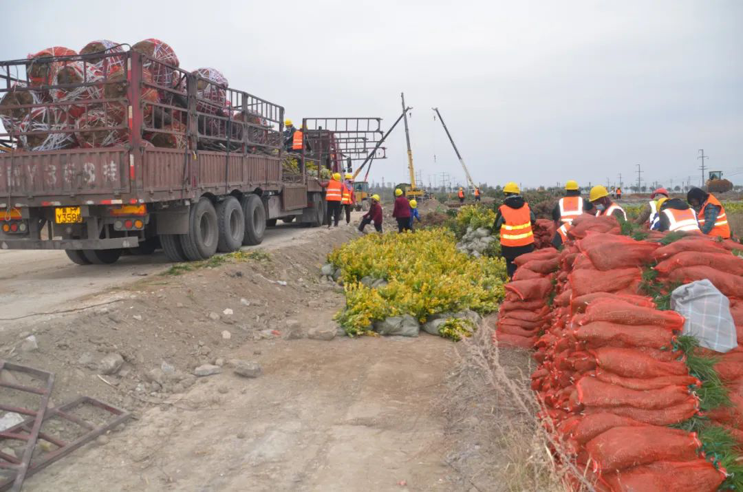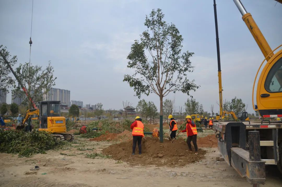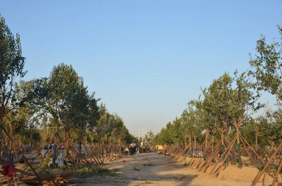 施工現(xiàn)場,大型機械集中作業(yè),挖掘機、裝載機、吊裝機和運輸車來回穿梭,九十余名工人辛勤勞作,相互配合,干勁十足,按設(shè)計規(guī)定放線挖坑、吊裝樹木、培土壓實,防護林建設(shè)有序進行。栽植過程中,多次討論研究,結(jié)合鹽池生態(tài)環(huán)境,統(tǒng)籌考慮,因地制宜選擇當?shù)卦灾矘浞N,目前已種植國槐、榆樹、大葉女貞、紅葉石楠、大葉黃楊、金森女貞、麥冬等各類喬灌木草種共計700余株,綠化種植面積2萬多平米,綠化建設(shè)將進一步對鹽湖北側(cè)岸帶生態(tài)系統(tǒng)起到很好的防護作用。