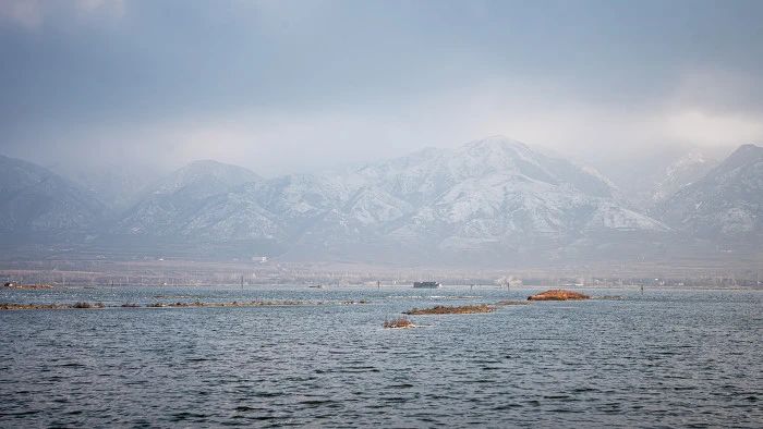 冬日的運(yùn)城鹽湖,依舊絢麗著她獨(dú)有的景色。湖內(nèi)阡陌縱橫,蘆葦蕩漾,眼前起舞的候鳥,瀲滟的波光。一旁的中條山山麓、藍(lán)天白云倒映在湖面,與七彩鹽湖交相輝映……構(gòu)成了一幅生動的山水圖景。